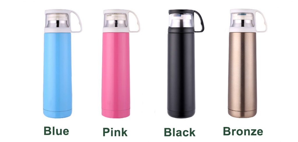 500ml 304 + 201 stainless steel flask with cup cap. Keep your drinks warm or cold.