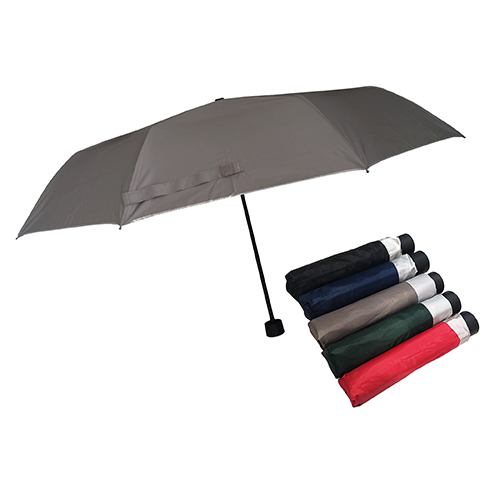 21 inch x 8 panels with 3 folds. Black Ribs. Plastic Handle.