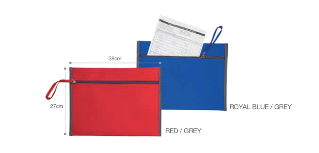 Larger zipped document folder. Small handle at zip for easy holding.
